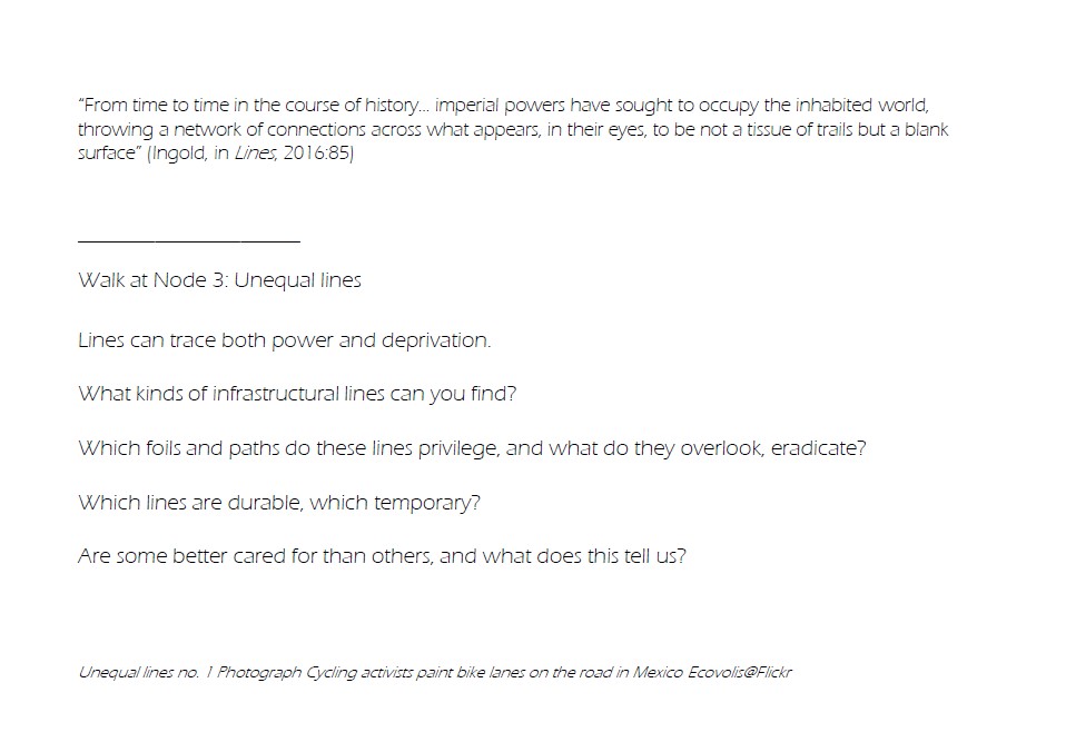 Located at the intersection of mobilities and inequalities, this walking workshop focussed on human paths in the urban environment. The lines (Ingold, 2007, 2015) that could be seen and not seen, traced and not traced, and their implications.
